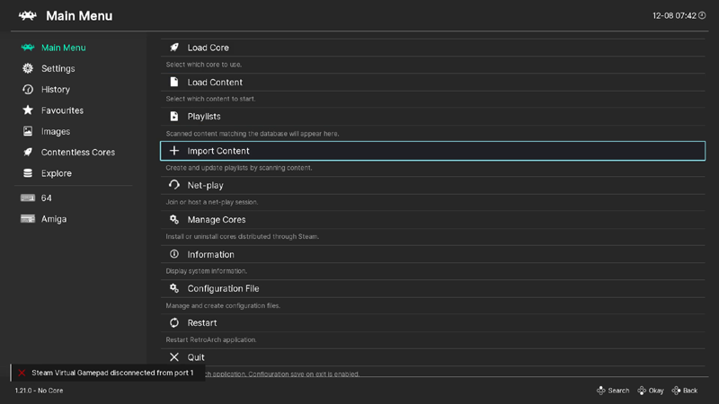 Once correctly set up, a shortcut to your games will appear in the main menu. To create a playlist in Retroarch do the following: