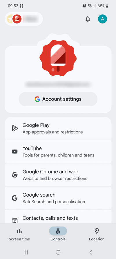 1) Open Google Family Link then select the family member by selecting the tab in the top left hand corner