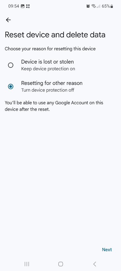 4) Scroll down and select Reset device and delete data
