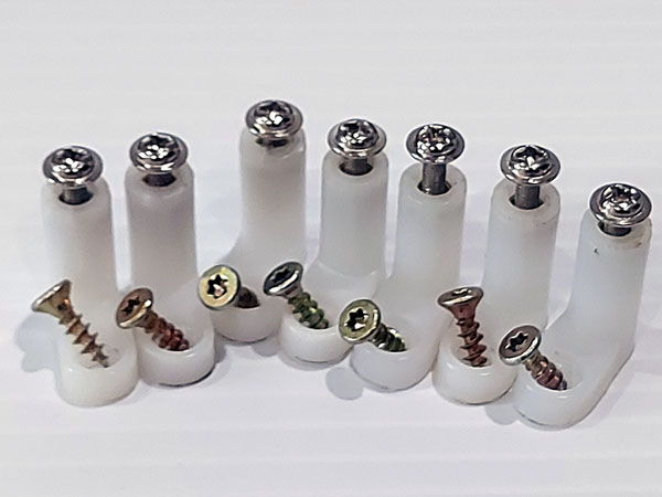 The standard steel screws included with most PC standoff kits are designed for thin metal trays. For a secure fit in a wooden base, I recommend swapping the included hardware for small wood screws. This ensures the standoffs won't pull out over time.