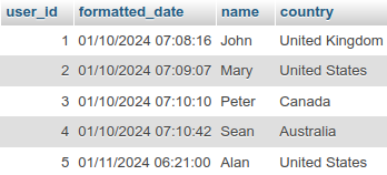To convert the field registration_date in seconds to readable date in MySQL / MariaDB enter the following query